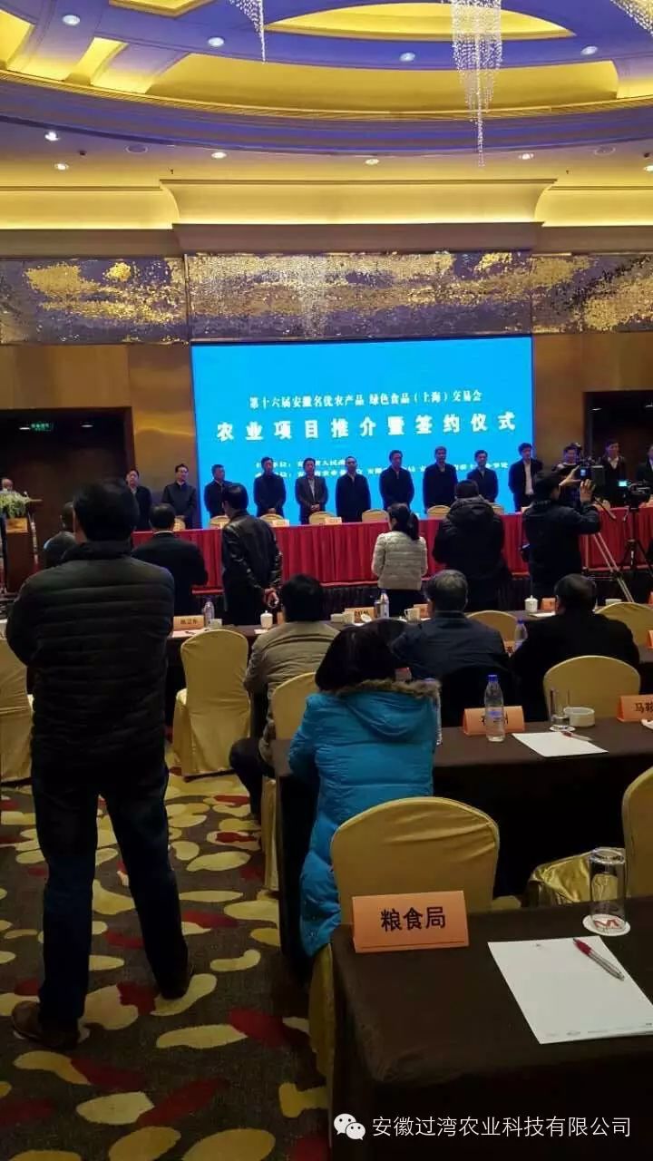 2015年12月31日上午在上海農展館會議室,召開安徽省龍頭企業、合作社和電子商務經營者對接活動,此活動由劉勇春副秘書長主持召開。我司和舒城縣南港鎮政府簽署戰略合作框架協議,合作打造萬畝富硒產業園,安徽省農委孫正東主任出席簽約儀式。